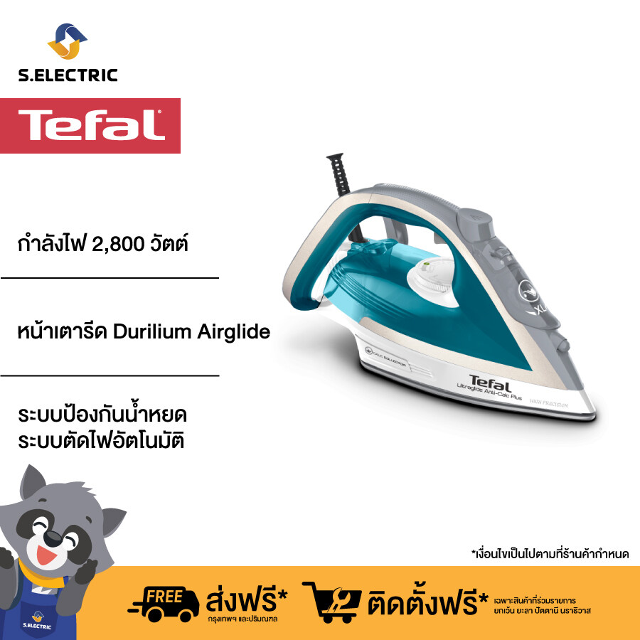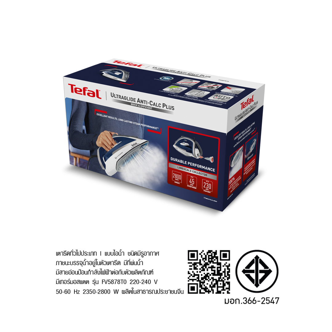 TEFAL เตารีดไอน้ำ Ultraglide Plus รุ่น FV5878T0 กำลังไฟ 2,800 วัตต์ หน้าเตารีด Durilium Airglide ระบบป้องกันน้ำหยด ระบบตัดไฟอัตโนมัติ รับประกัน 2 ปี
