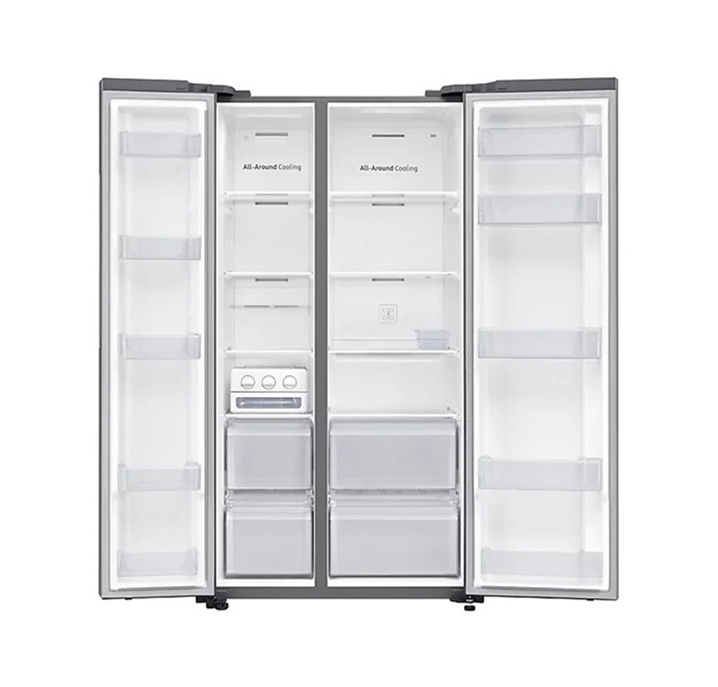 SAMSUNG ตู้เย็น Side by side ขนาด 23.1 คิว, สี Inox Gray รุ่น RS62R5001M9/ST ระบบ All-around Cooling ตรวจวัดอุณหภูมิและเป่าอากาศให้เย็นอย่างต่อเนื่อง คอมเพรสเซอร์ Inverter