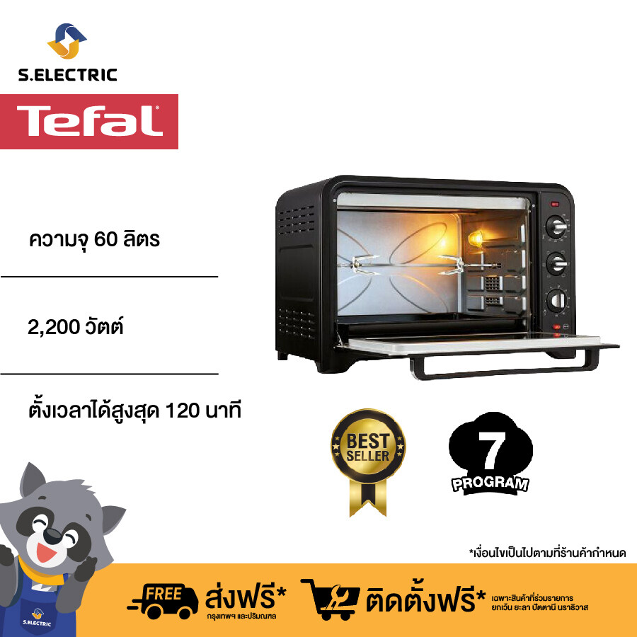 TEFAL เตาอบไฟฟ้า รุ่น OF4958TH ความจุ 60 ลิตร กำลังไฟ 2,200 วัตต์ สามารถตั้งเวลาได้สูงสุด 120 นาที รับประกัน 2 ปี ส่งฟรีทั่วไทย