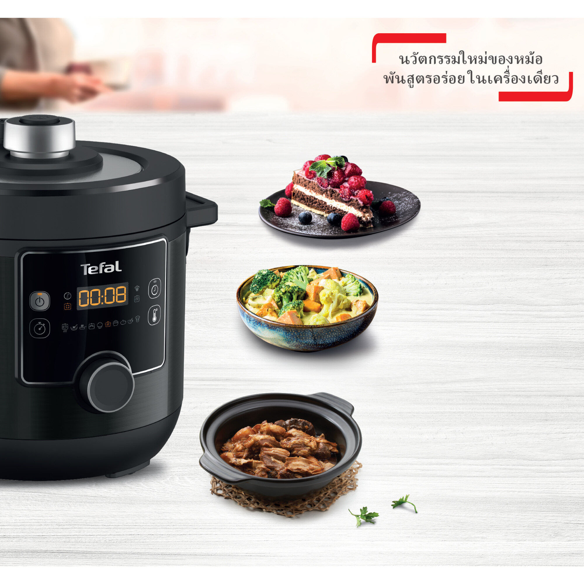 ให้คุณใช้งานได้อย่างสะดวกสบาย ด้วยหม้ออัดแรงดันไฟฟ้า จากแบรนด์ TEFAL ที่มีกำลังไฟ 1,200 วัตต์ ความจุทั้งหมด 7.6 ลิตร ความจุใช้งาน 5 ลิตร ทำอาหารได้สำหรับ 4-5 คน มาพร้อมนวัตกรรมใหม่ของหม้อ ทำอาหารได้รวดเร็วและหลากหลาย จะต้มผัดแกงตุ๋นหรือหุงข้าว ก็ทำได้ในหม้อเดียว เทคโนโลยีทำอาหารด้วยแรงดันที่มีความปลอดภัยสูง สูงสุด 70 kPa ปรุงอาหารอร่อยได้ในเวลาไม่นาน หมดกังวลเรื่องปล่อยแรงดัน ให้คุณกดปล่อยแรงดันได้ง่ายๆ ในปุ่มเดียว โดยไม่ต้องกดค้าง ปุ่มปล่อยแรงดันอยู่ห่างจากวาล์วปล่อยแรงดัน ปลอดภัยยิ่งขึ้น ลดโอกาสไอน้ำร้อนโดนมือ ใช้งานง่าย แม้คนทำอาหารไม่เป็น ก็ทำเมนูอร่อยได้ใน 3 ขั้นตอน : 1.ใส่ส่วนผสมลงในหม้อ 2.เลือกเมนูง่ายๆในปุ่มหมุนเดียว 3.กดปล่อยแรงดันเมื่อครบเวลา สะดวกสบาย ทำอาหารได้แบบไม่ต้องคุมไฟ ไม่ต้องคอยเฝ้าหน้าเตาอีกต่อไป